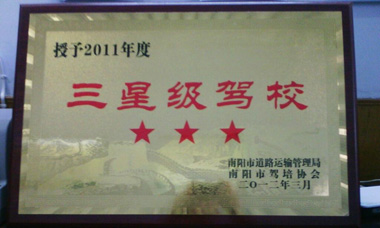 ??????? 2012年3月,順行駕培有限公司被南陽市道路運(yùn)輸管理局和市駕培行業(yè)協(xié)會聯(lián)合授予“三星級駕校”稱號。
