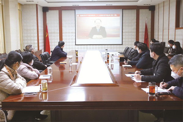圖為集團(tuán)公司機(jī)關(guān)黨總支組織全體黨員觀看黨的二十大精神培訓(xùn)遠(yuǎn)程直播。