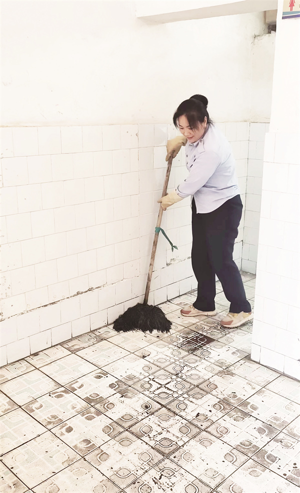 受高鐵開通、800公里以上客運班線取消及疫情反復(fù)影響,客流大幅下降,南陽汽車站業(yè)務(wù)萎縮人員富余。2021年9月,趙盈轉(zhuǎn)崗到書院小學(xué),負責(zé)打掃辦公樓和教學(xué)樓的十幾個衛(wèi)生間。為了不影響學(xué)生正常上課,又要保持衛(wèi)生間干凈無異味,就需要利用上課時間進行打掃,每天都要用水桶從外面提水沖洗六七次,還要利用節(jié)假日期間對衛(wèi)生間進行大掃除。勞動強度大,趙盈腰部又受過傷,她丈夫擔(dān)心連做飯都不會做、沒怎么干過家務(wù)的她堅持不下來。趙盈動情地說:“站上人員多,公司不僅不裁員,還想辦法為我們提供崗位,雖然苦點累點,但工資比原來發(fā)得多,我已經(jīng)很滿足了。”她是這樣說的,也是這樣做的。剛轉(zhuǎn)崗時,她業(yè)務(wù)不熟,常常累得筋疲力盡卻事倍功半。為了盡快適應(yīng),她虛心向有經(jīng)驗的同事請教,每天提前到崗,臟活累活搶著干。每天早上8點前到崗,晚上9點多打掃完離開,風(fēng)雨無阻,一干就是兩年,趙盈由剛開始的手忙腳亂到現(xiàn)在已是有條不紊。
