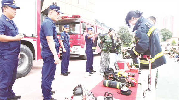 8月24日,南陽(yáng)燕園書院中學(xué)邀請(qǐng)宛城區(qū)消防大隊(duì)到學(xué)校對(duì)高一新生進(jìn)行消防安全培訓(xùn)和應(yīng)急逃生演練。(付延武)