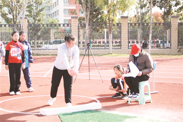 在小學(xué)組女子實(shí)心球比賽中,書院小學(xué)向秋各同學(xué)發(fā)揮穩(wěn)定,以8.12米的成績?nèi)〉脹Q賽第一名的好成績,為學(xué)校爭得了榮譽(yù)。(牛雪麗)