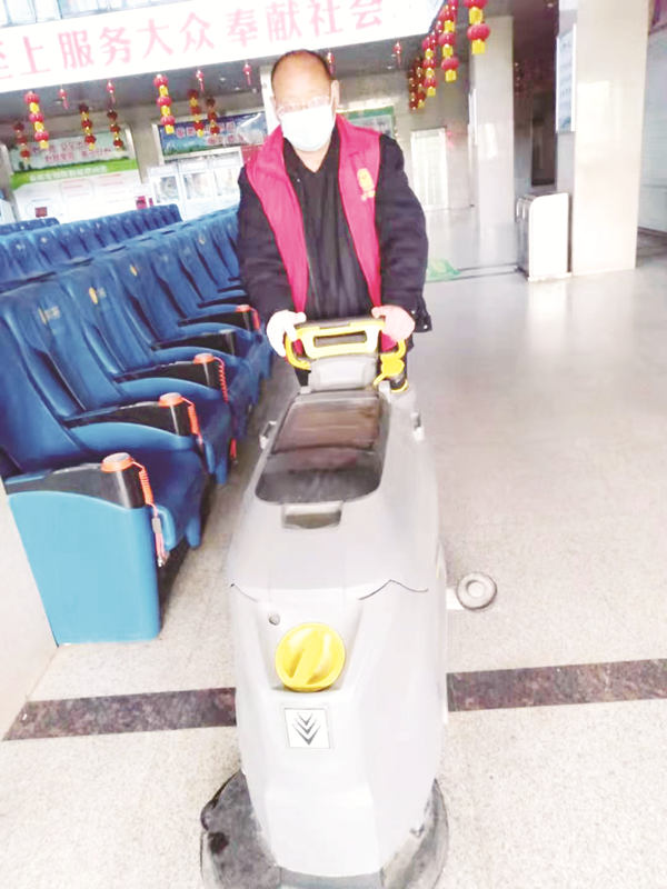 到保潔班后,劉洪森很快擺正了自己的位置,依然熱情工作,盡職盡責(zé)。候車廳是車站的門面,干凈與否關(guān)系到車站的聲譽(yù),衛(wèi)生不能有半點(diǎn)馬虎。打掃候車廳地面,劉洪森先用笤帚慢慢掃一遍,然后用拖把把死角拖干凈,再用掃地機(jī)器推一遍,最后撒上濕鋸末推幾遍,經(jīng)他打掃后地面能照出人影來。可候車廳人來人往,進(jìn)進(jìn)出出,這邊剛打掃完,那邊的紙屑、痰跡就又出現(xiàn)了,劉洪森掃帚、拖把不離手,做到隨臟隨掃,盡可能保持地面干凈整潔。