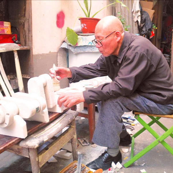 制作中,他把制成的毛坯放到球場上曬,忙不過來就讓老伴幫忙。模型做出后,需要用手打磨,手指磨破了,貼上“創(chuàng)可貼”連續(xù)干,兩腿不方便干脆取下假肢,在院內(nèi)支上一塊木板當(dāng)工作臺。白天沒完成的活兒,晚上在院內(nèi)扯上電燈干通宵。黃福林的兩條腿磨得發(fā)紫,干脆坐在地上干活,干起來忘記了疼痛。