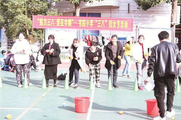 3月8日下午,書院小學(xué)組織全體教職工在學(xué)校操場(chǎng)舉辦2022年慶“三八”婦女節(jié)活動(dòng)。(王靖毅)