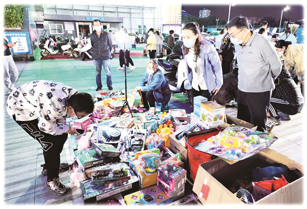 5月11日晚,宛城區(qū)市體育中心星空淘寶廣場(跳蚤市場)正式開市迎客。宛運商貿(mào)公司抓住時機開攤設(shè)點,千方百計抓收入。(周乃新)