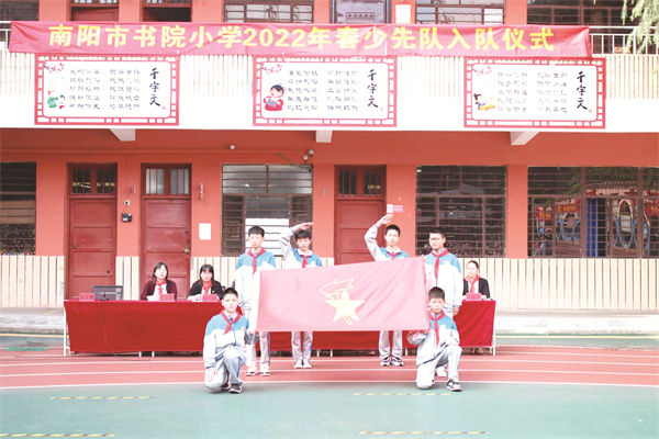 為充分發(fā)揮少先隊(duì)模范作用,增強(qiáng)少先隊(duì)員的光榮感和組織歸屬感,在前期準(zhǔn)備的基礎(chǔ)上,5月20日上午,書(shū)院小學(xué)舉行少先隊(duì)入隊(duì)儀式。(牛雪麗)