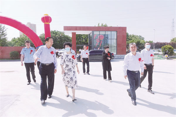 圖為與會(huì)領(lǐng)導(dǎo)到新成立的交通物流學(xué)院參觀指導(dǎo)。副市長阿穎(左前二),市政府副秘書長李芳(右三),南陽農(nóng)業(yè)職業(yè)學(xué)院黨委書記張士君(右二),集團(tuán)公司董事長、黨委書記、總經(jīng)理胡逸云(左前一)